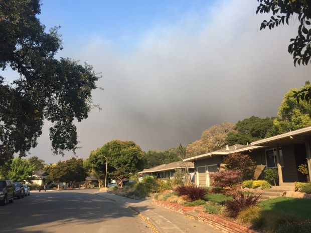 We head back to our house. Our neighborhood still stands, the hill behind us intact. Once again we stand on the sidewalk with our neighbors, staring at the smoke in the distance. Have you heard anything? Is everyone OK? We all know families whose homes are already gone.