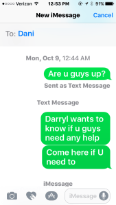 I get out my phone. Call my mom. She’s up watching news. Tells me to call Kim. I consider calling Dani. Am I overreacting? I don’t want to wake everyone up.